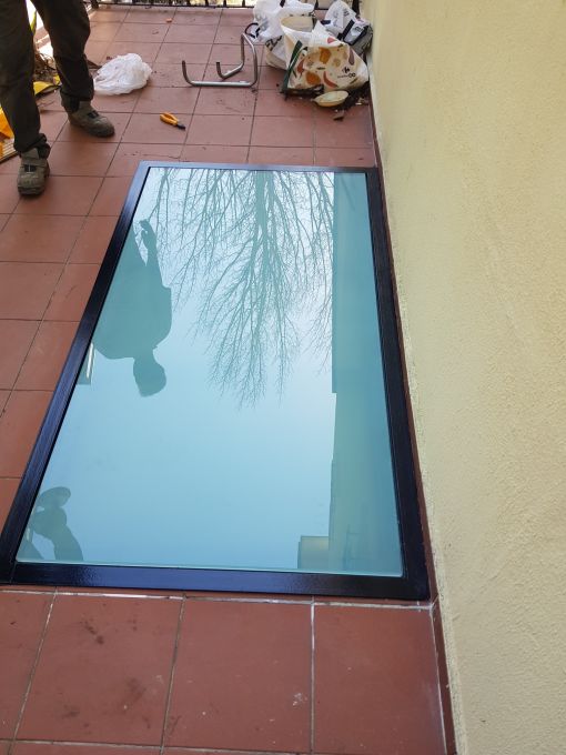 Kıymetli yazarımızın villasına yaptığımız opak cam zemin aydınlatma. Çelik alt yapısı ve Opak lamine camlı